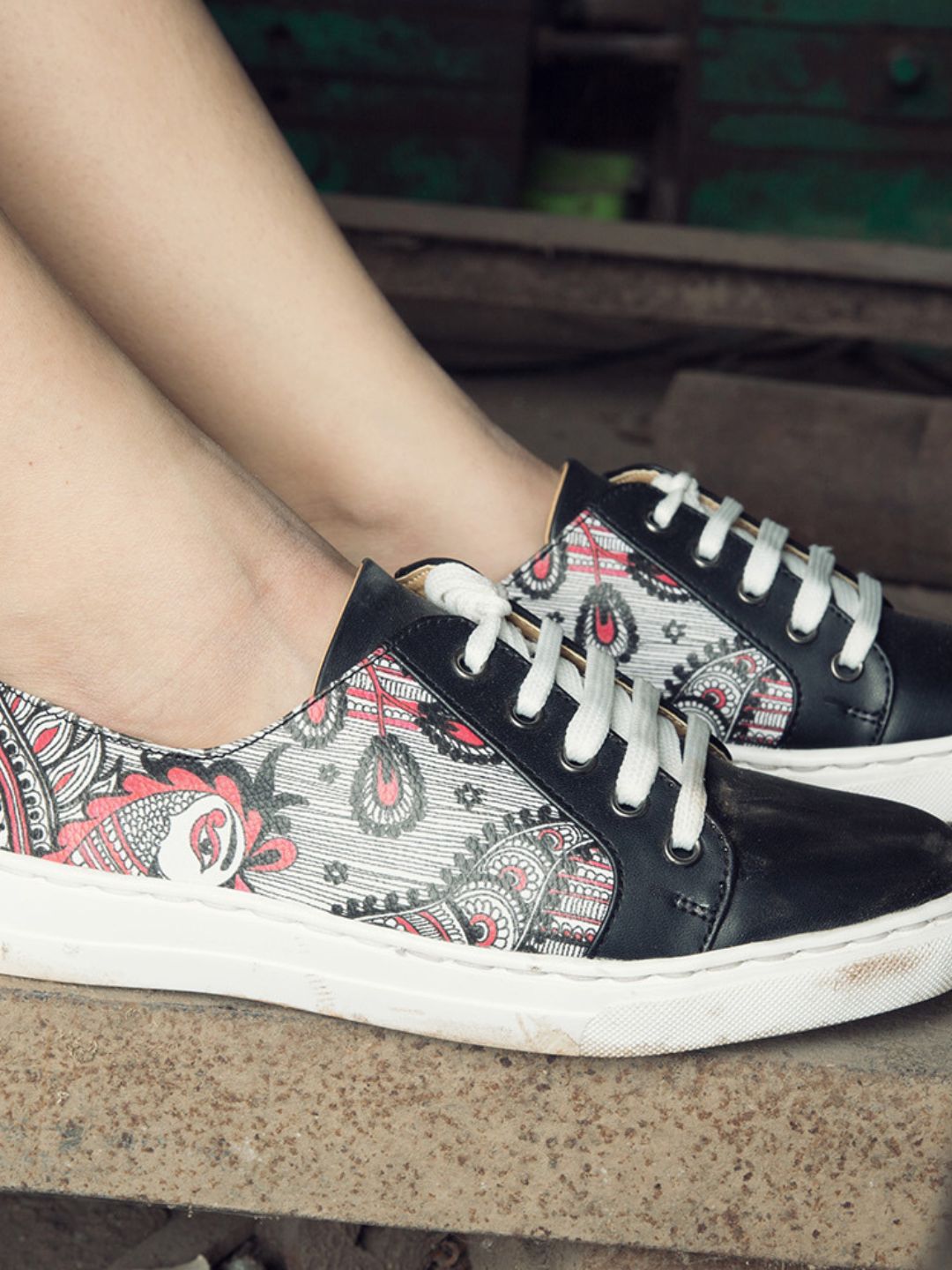 Indulge in the elegant charm of our Black Kalamkari Hand Painted Sneakers. These sneakers are not only stylish and comfortable, but they are also custom-made just for you. Perfect for any occasion, these sneakers will elevate your outfit and leave you feeling classy and confident. Order yours today and step into luxury!