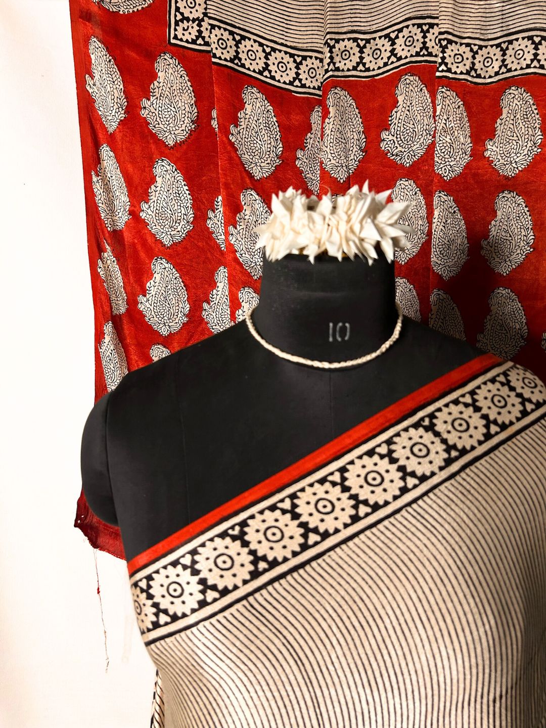 Experience elegance with Divya, a block-printed modal silk saree that beautifully blends artistry and comfort. Its perfect color combination and graceful fall enhance your silhouette, offering a flattering fit that embraces your body. Ideal for those who seek fashion that feels as good as it looks, Divya transforms every occasion into a statement of refined style.