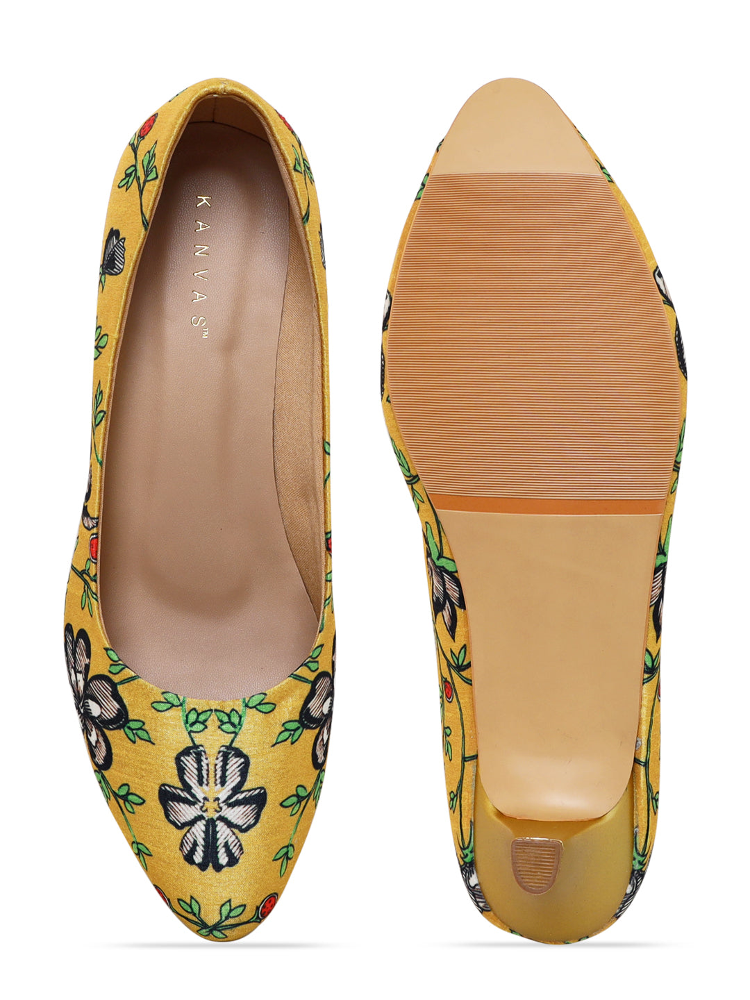 Vibrant and elegent these heels for great comfort and style. It has the perfect heel height for your daily use. Pair them with your Indians or your denims and you are good to set a trend.