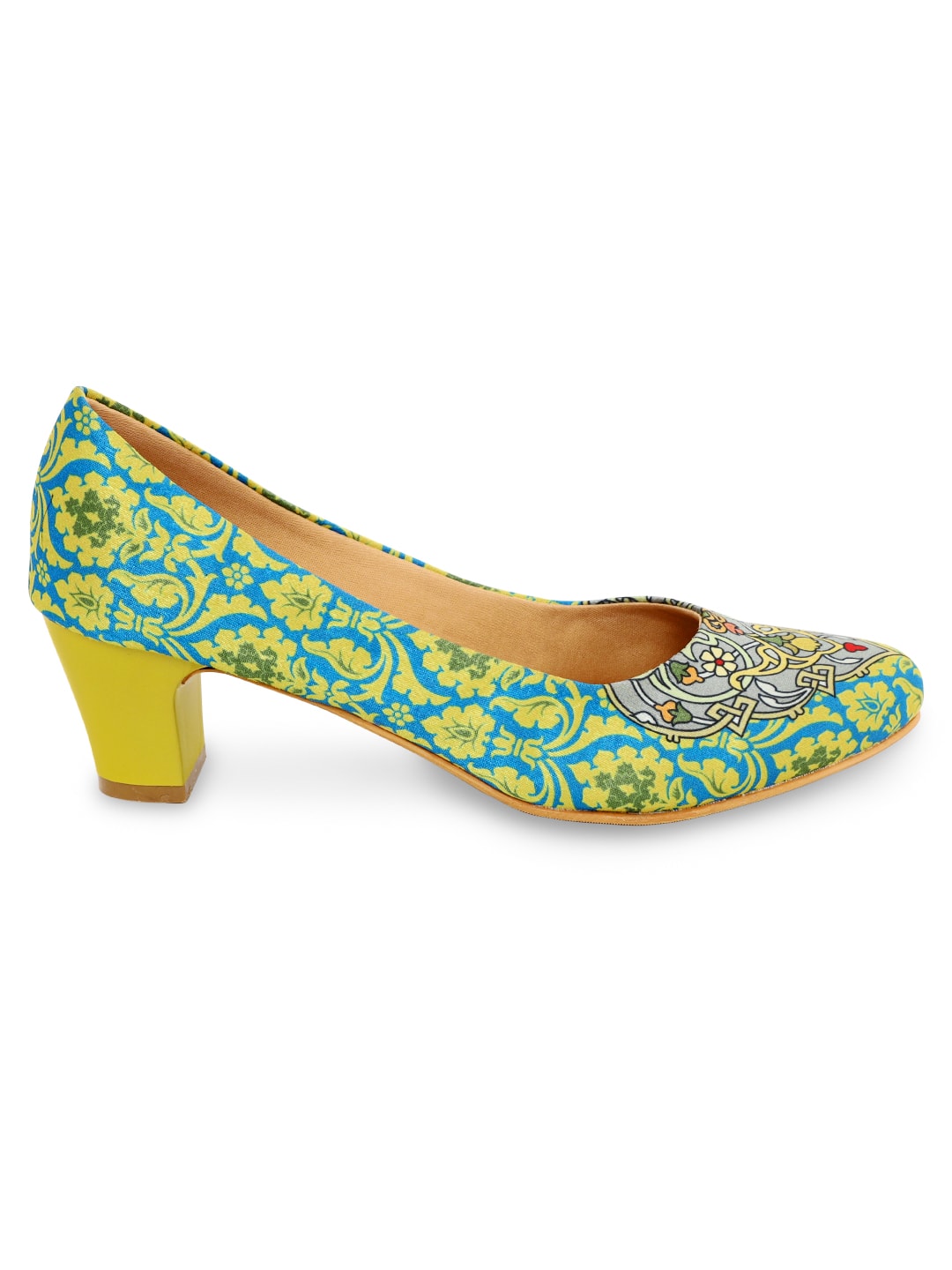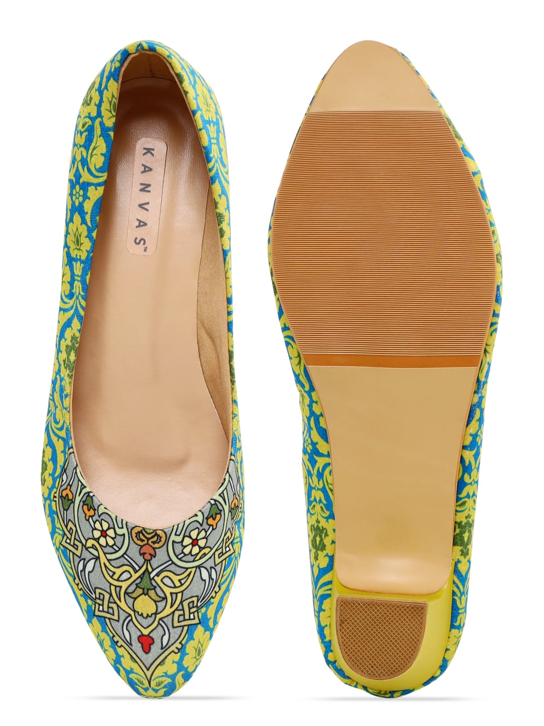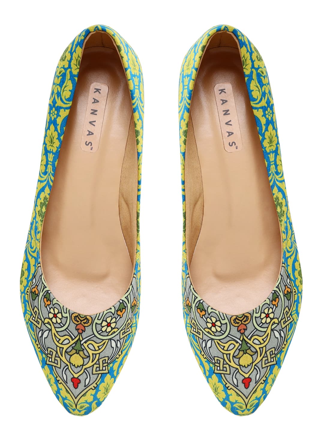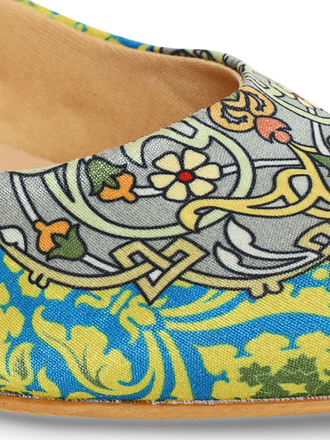 This product will take you down to the Mughal empire and its intricate frescos. Its print is developed by taking its colors and pattern inspiration and converted into the most versatile detailed print. It is symmetric and makes the illusion of the wall frescos. 2 heel with slip sole and a steady comfort.