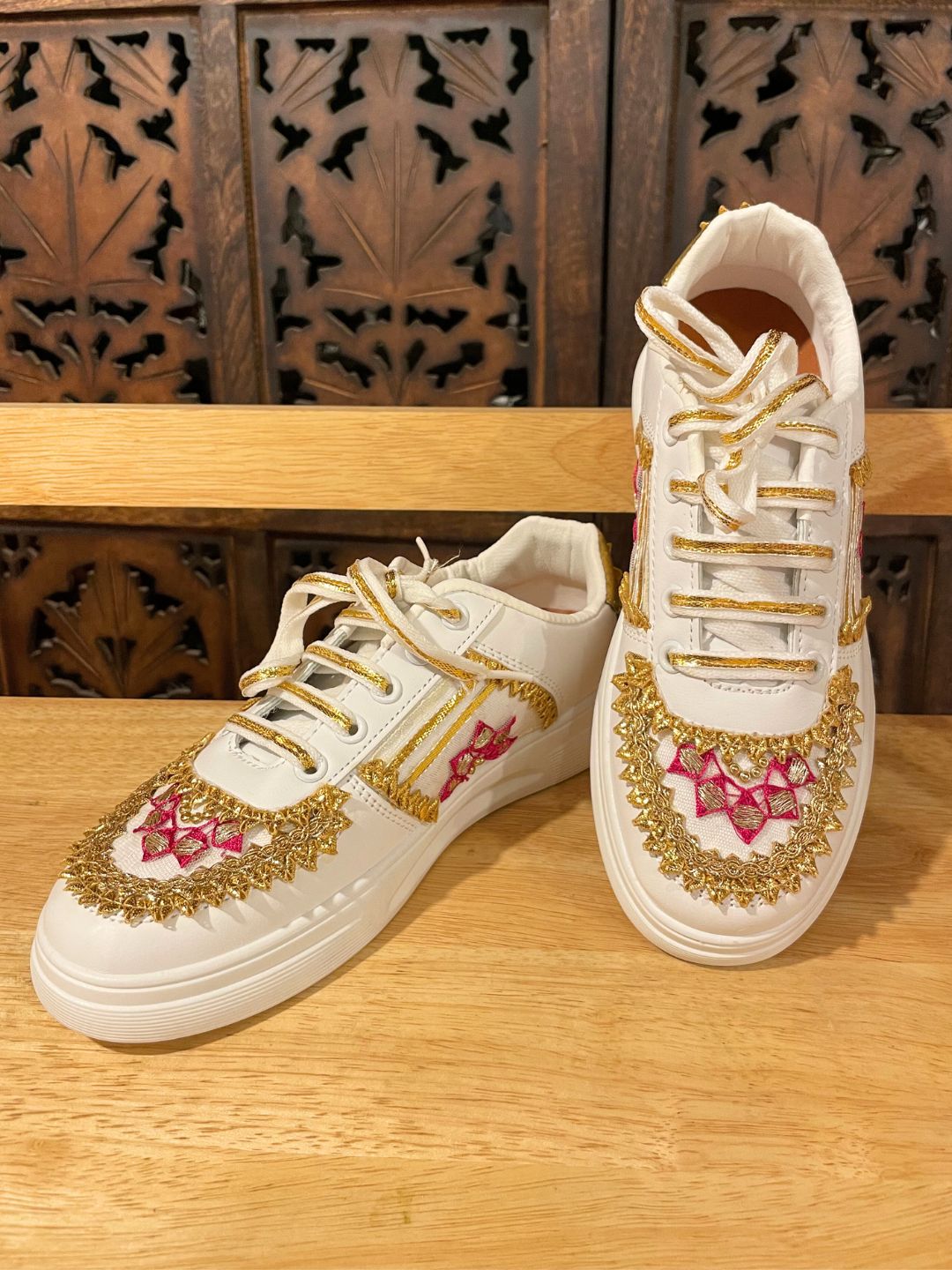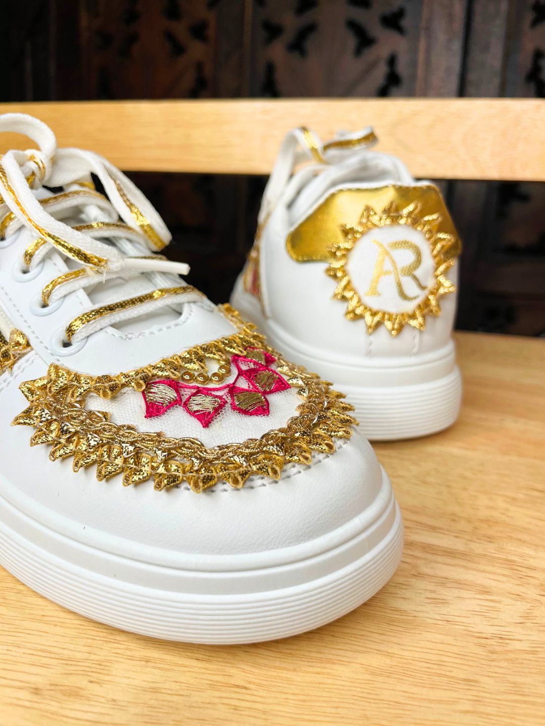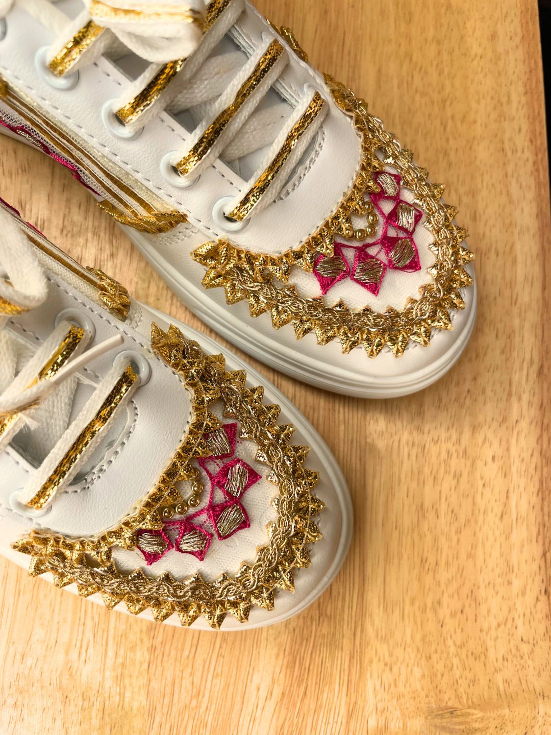 Swap your juttis for these cool kicks by Kanvas. When it comes to fashion for your big day each and every couple turn into super ninjas! Why should your feet suffer in uncomfortable basic shoes when you can customize a comfort pair to match your sherwani or suit. Yes! You heard it right. Be it sangeet, Haldi or your wedding day we've got you covered with some desi-style kicks you can have a blast in.