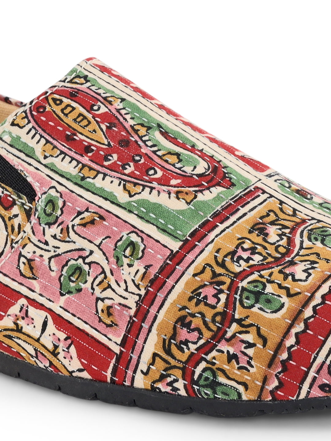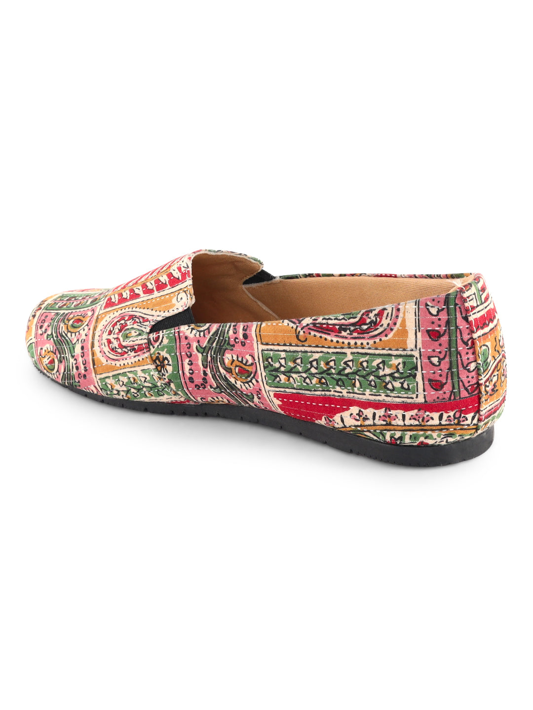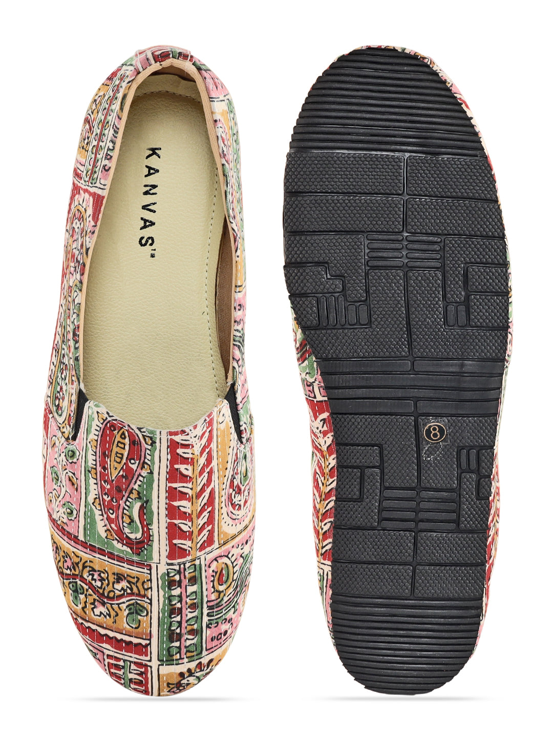 These Multicolour Block Moccasins feature a unique block printing technique, creating a bold and eye-catching style. Cotton construction provides breathability and comfort while memory foam cushioning and enhanced durability ensure reliable comfort and wear.