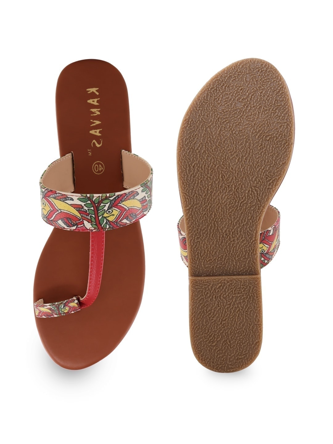 For the festive season and beyond, look no further than these gorgeous kolhapuris designed by Kanvas. These flats are lightweight flat soles with open-toe kolhapuri design with an exquisite and intricate Madhubani-inspired artwork depicting our Indian roots. These kolhapuris look super trendy and classy. A new style that is a must for your wardrobe. Flat Slip Resistant Sole with steady fit and comfort.