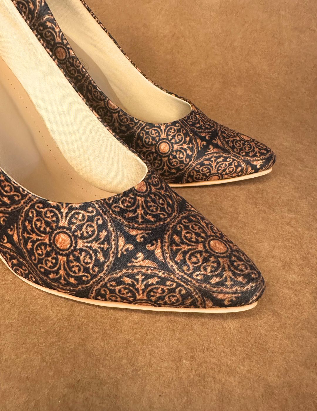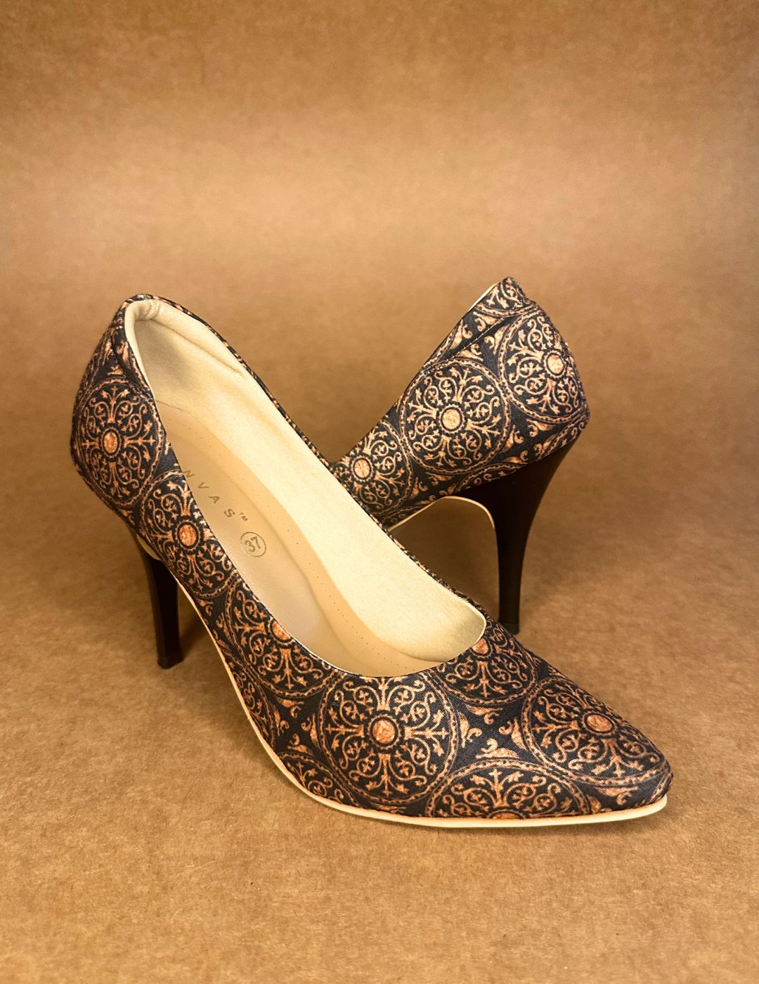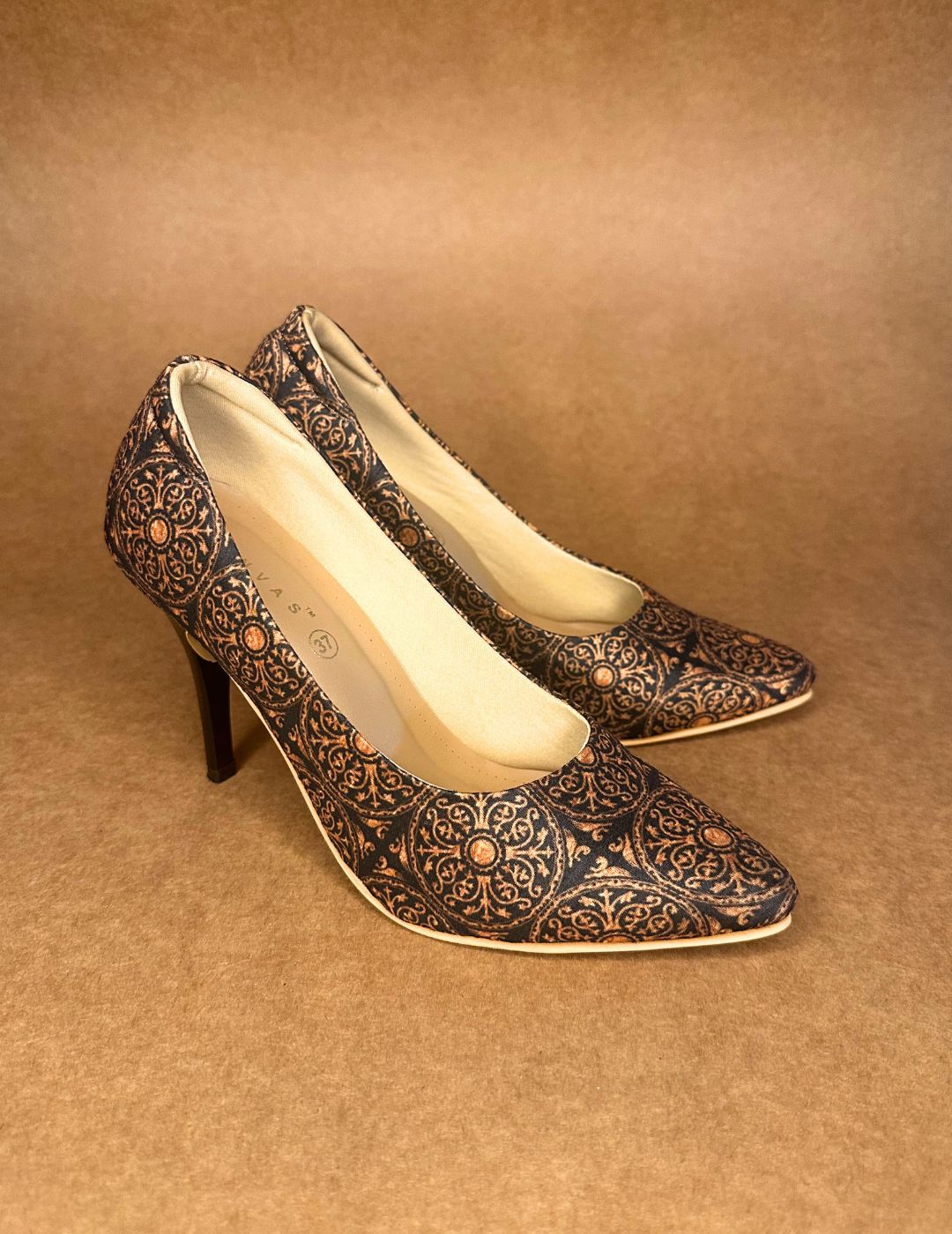 Step up your style game with our versatile Black and Gold Pumps Shoes! These heels feature a 4 inch heel that adds height and sophistication to any look. With a comfortable fit and cushioned sole, you can rock these shoes all day and night. Perfect for any occasion and can be styled with both Indian and Western outfits. Elevate your wardrobe today!