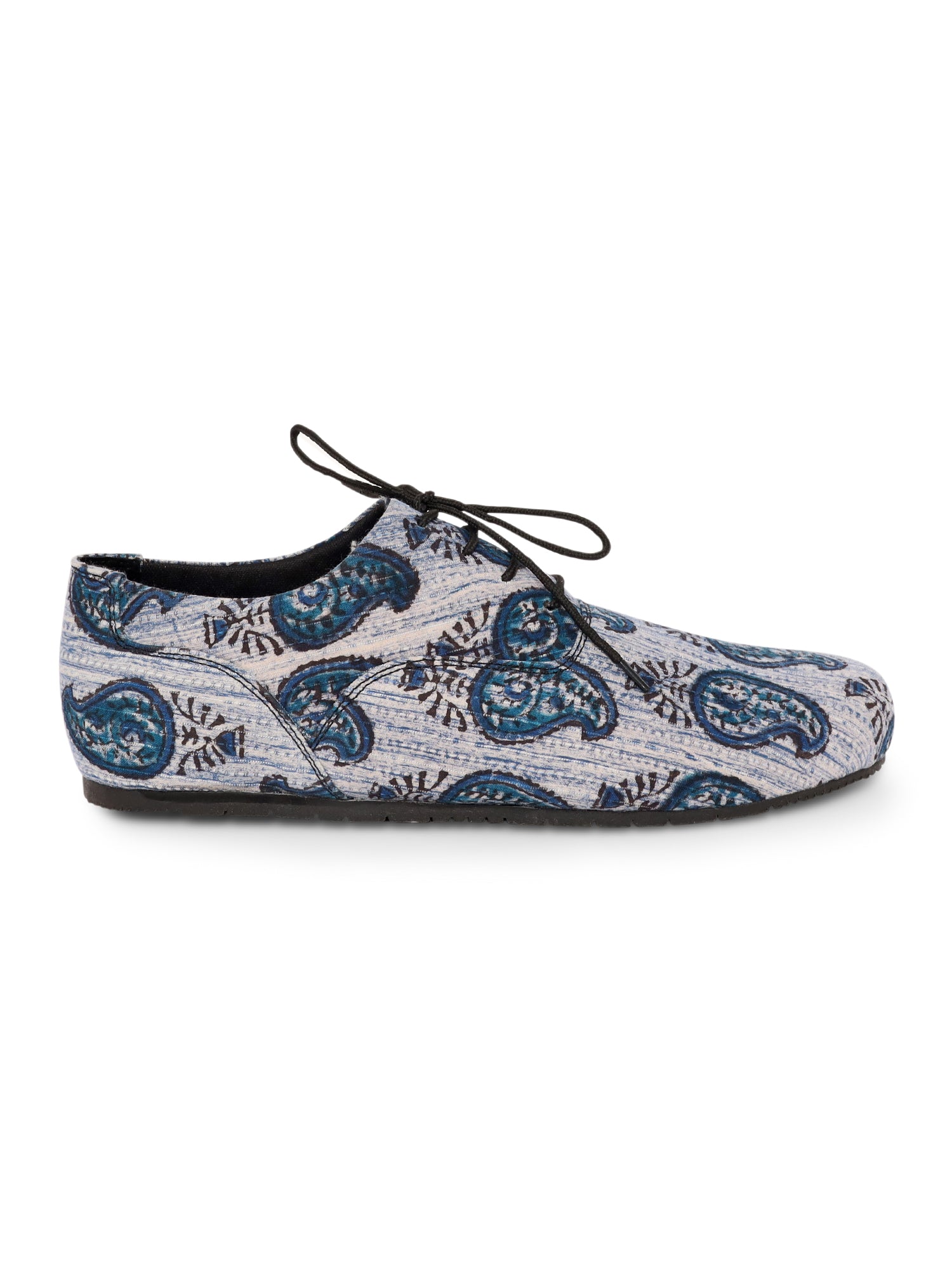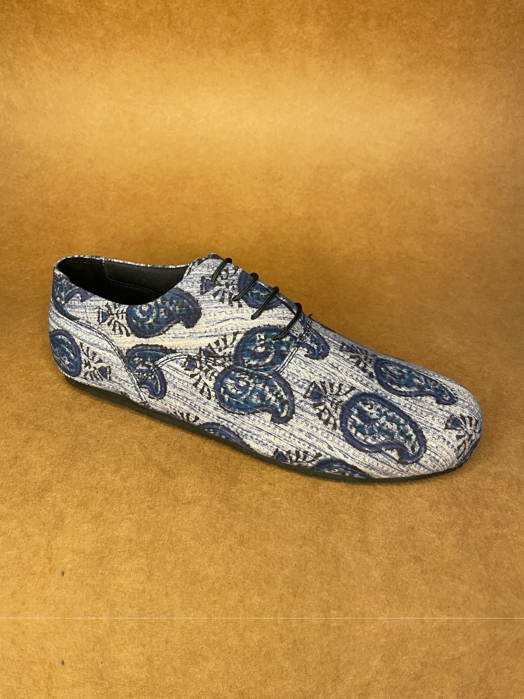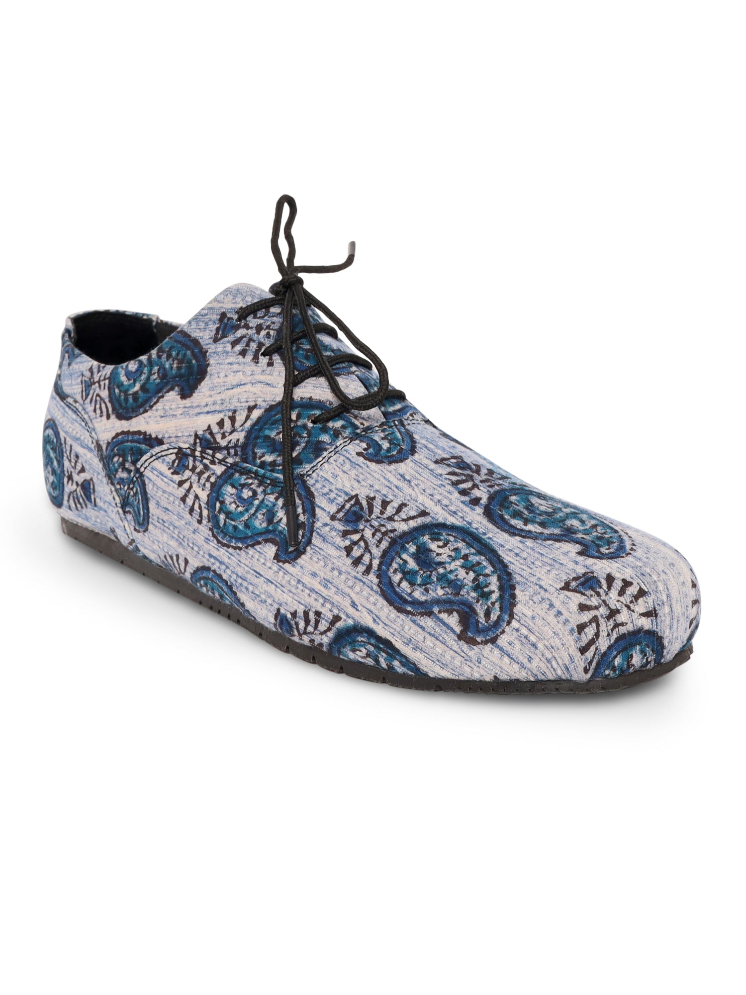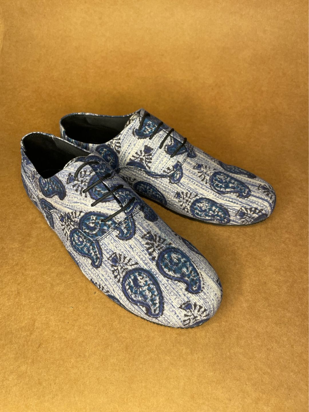 Step into style with our Blue Kairi Hand Block Oxfords. These unisex shoes feature exquisite hand-blocked prints on soft cotton that ensure all-day comfort. The classic round toe and flat design offer versatility for any outfit. Perfect for those who appreciate artisanal craftsmanship without sacrificing everyday wearability.