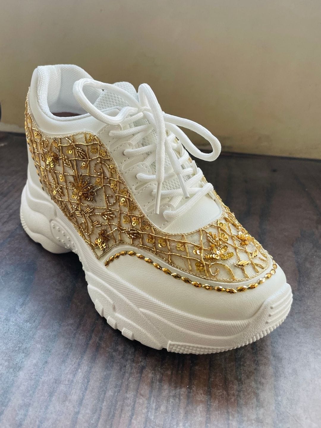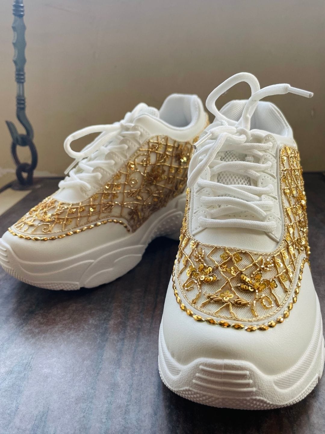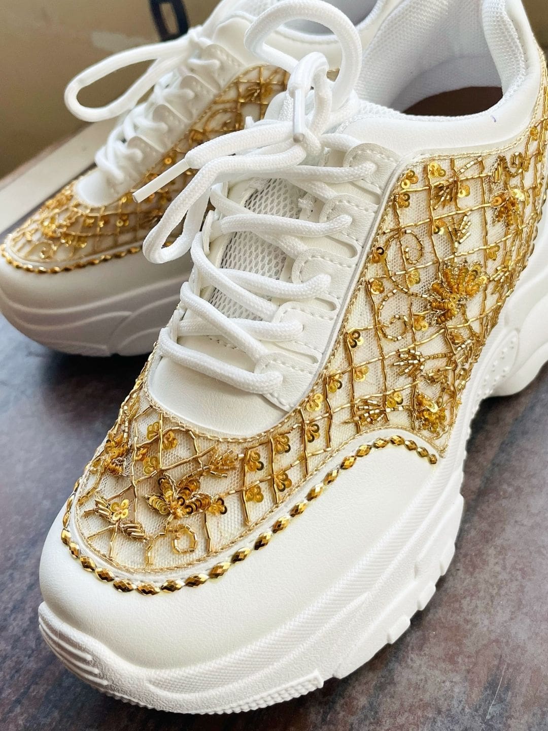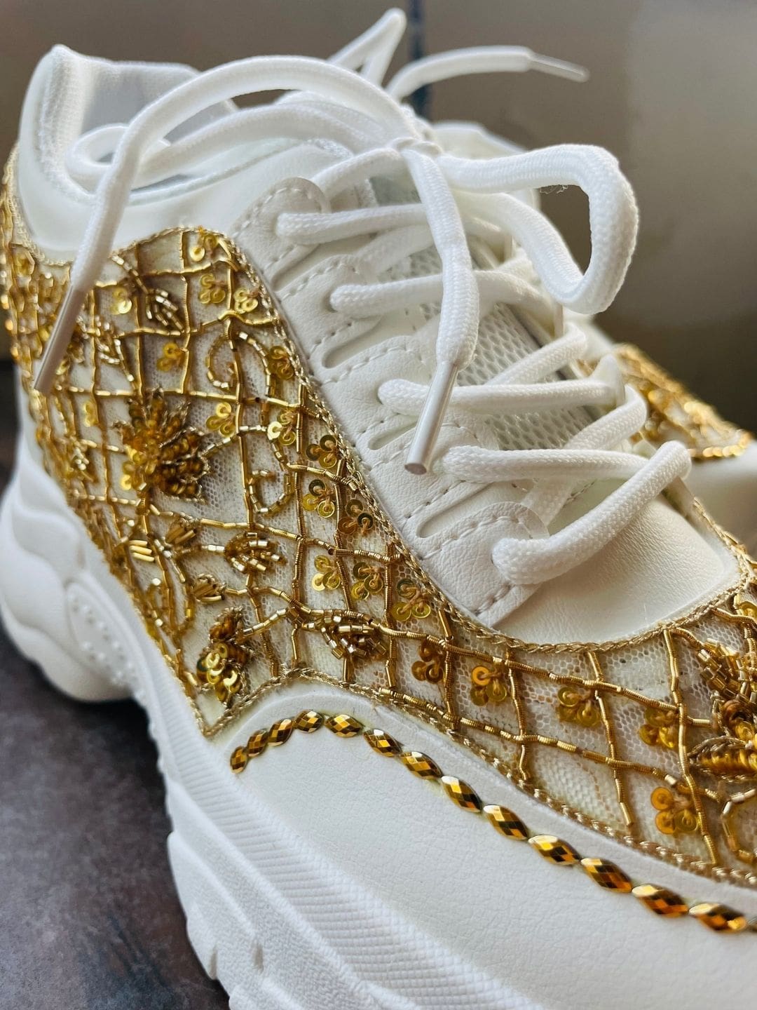 Swap your stilettos or juttis for these cool kicks by Kanvas. When it comes to fashion for your big day each and every couple turn into super ninjas! Everything from clothes to jewelry, hair and make-up is taken care of in absolute sync. But we often forget that the ceremonies and events are gonna be tiring and long, so why should your feet suffer in uncomfortable basic shoes when you can customize one just to match your lehenga or your sherwani. Yes! You heard it right. Be it sangeet, Mehendi or your wedding day we've got you covered with some desi-style kicks you can have a blast in.