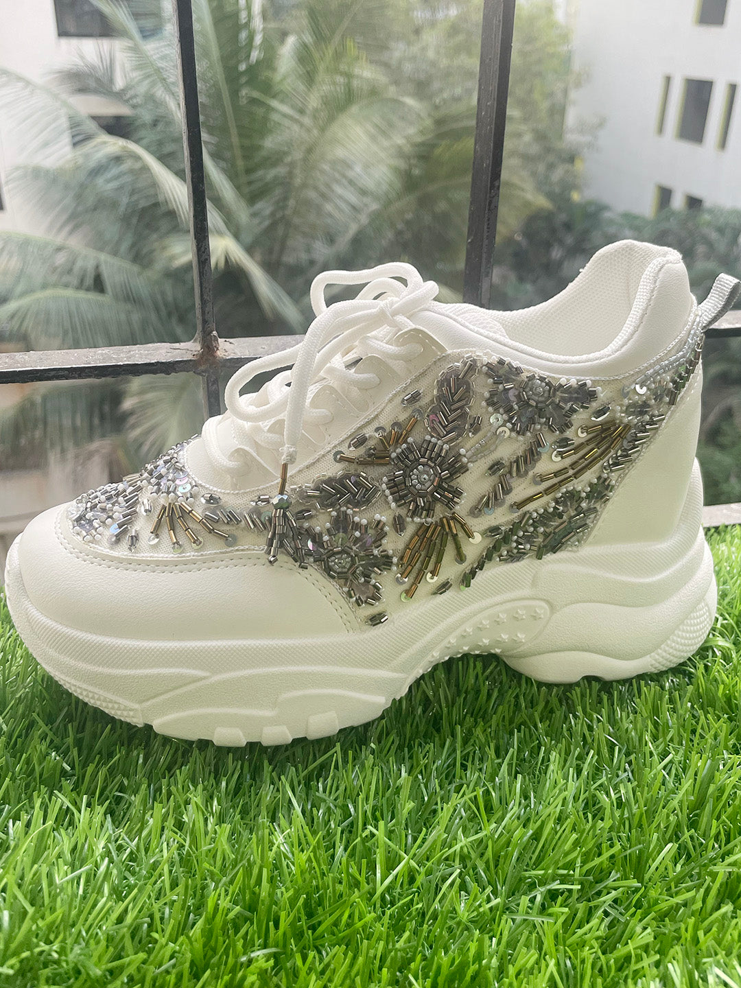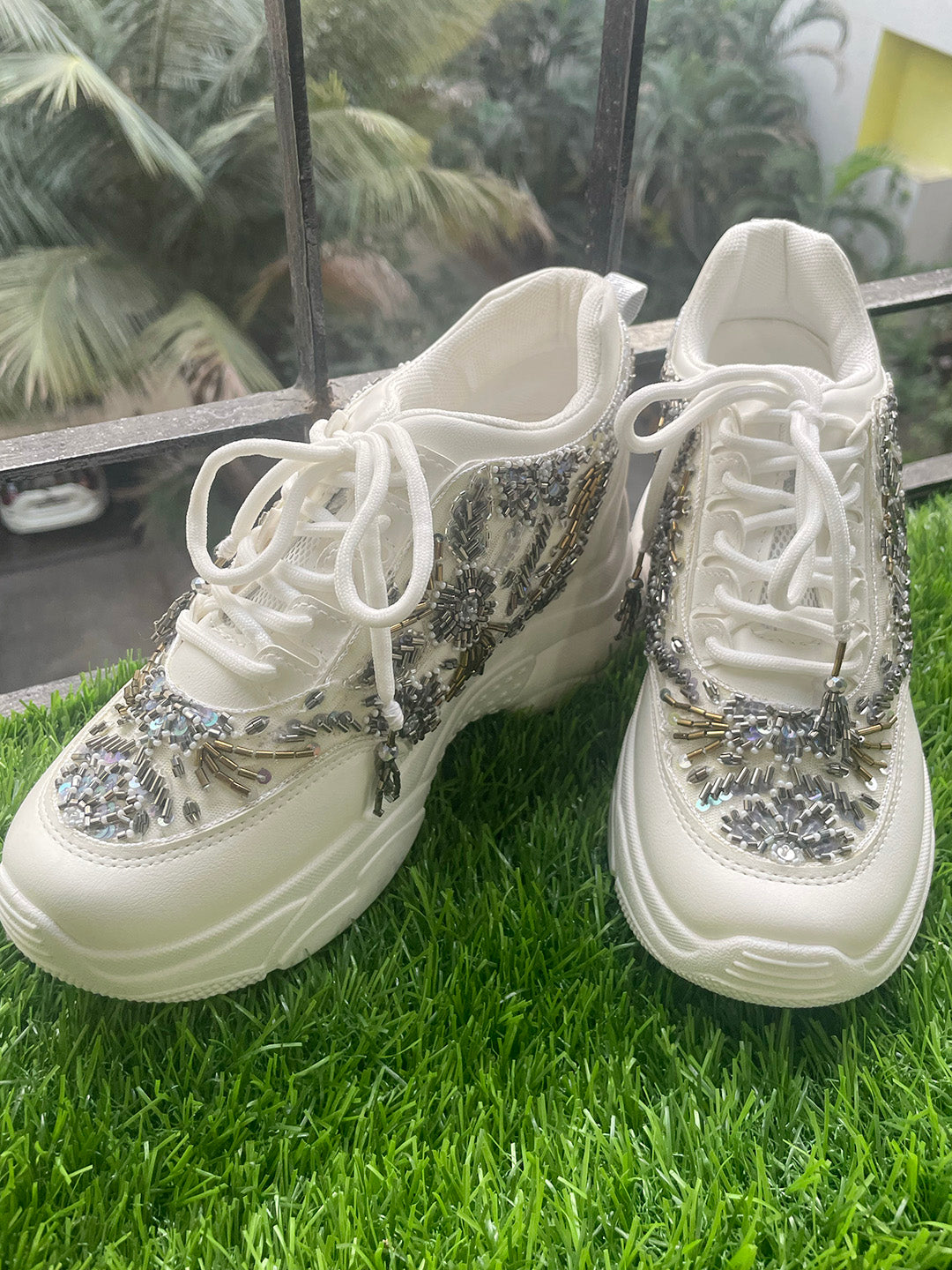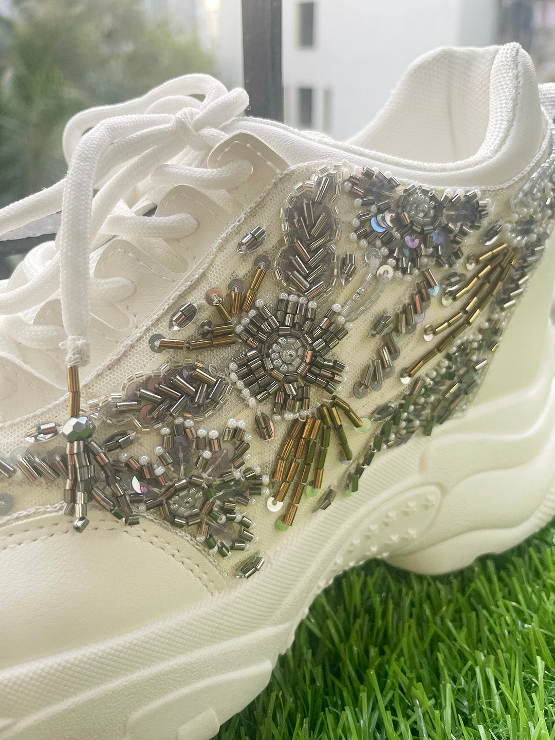 Swap your stilettos or juttis for these cool kicks by Kanvas. When it comes to fashion for your big day each and every couple turn into super ninjas! Everything from clothes to jewelry, hair and make-up is taken care of in absolute sync. But we often forget that the ceremonies and events are gonna be tiring and long, so why should your feet suffer in uncomfortable basic shoes when you can customize one just to match your lehenga or your sherwani. Yes! You heard it right. Be it sangeet, Mehendi or your wedding day we've got you covered with some desi-style kicks you can have a blast in.