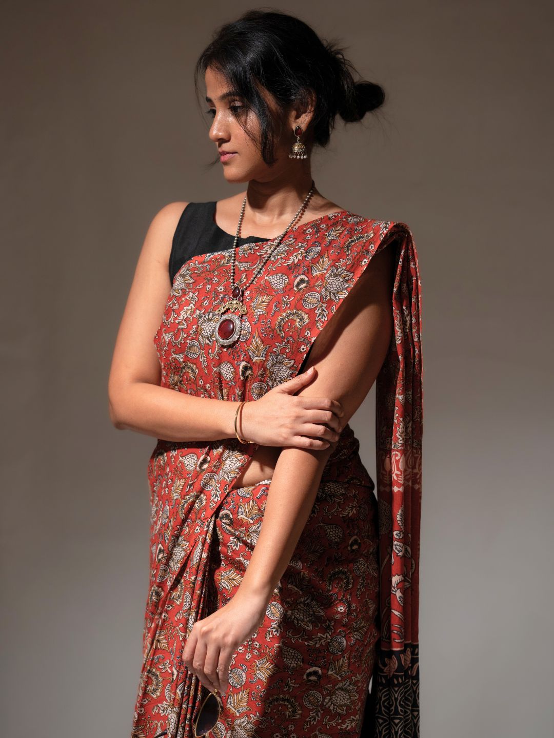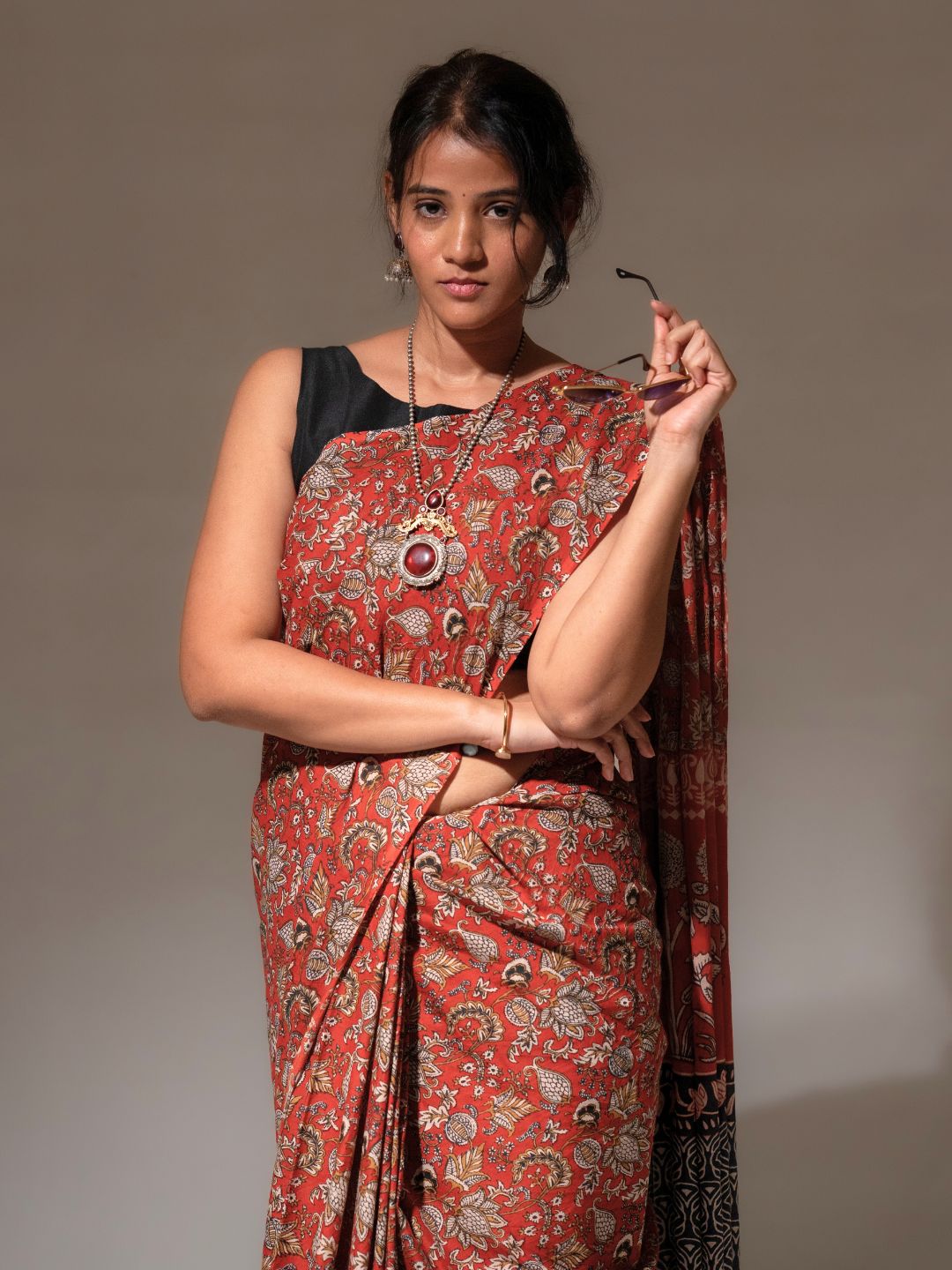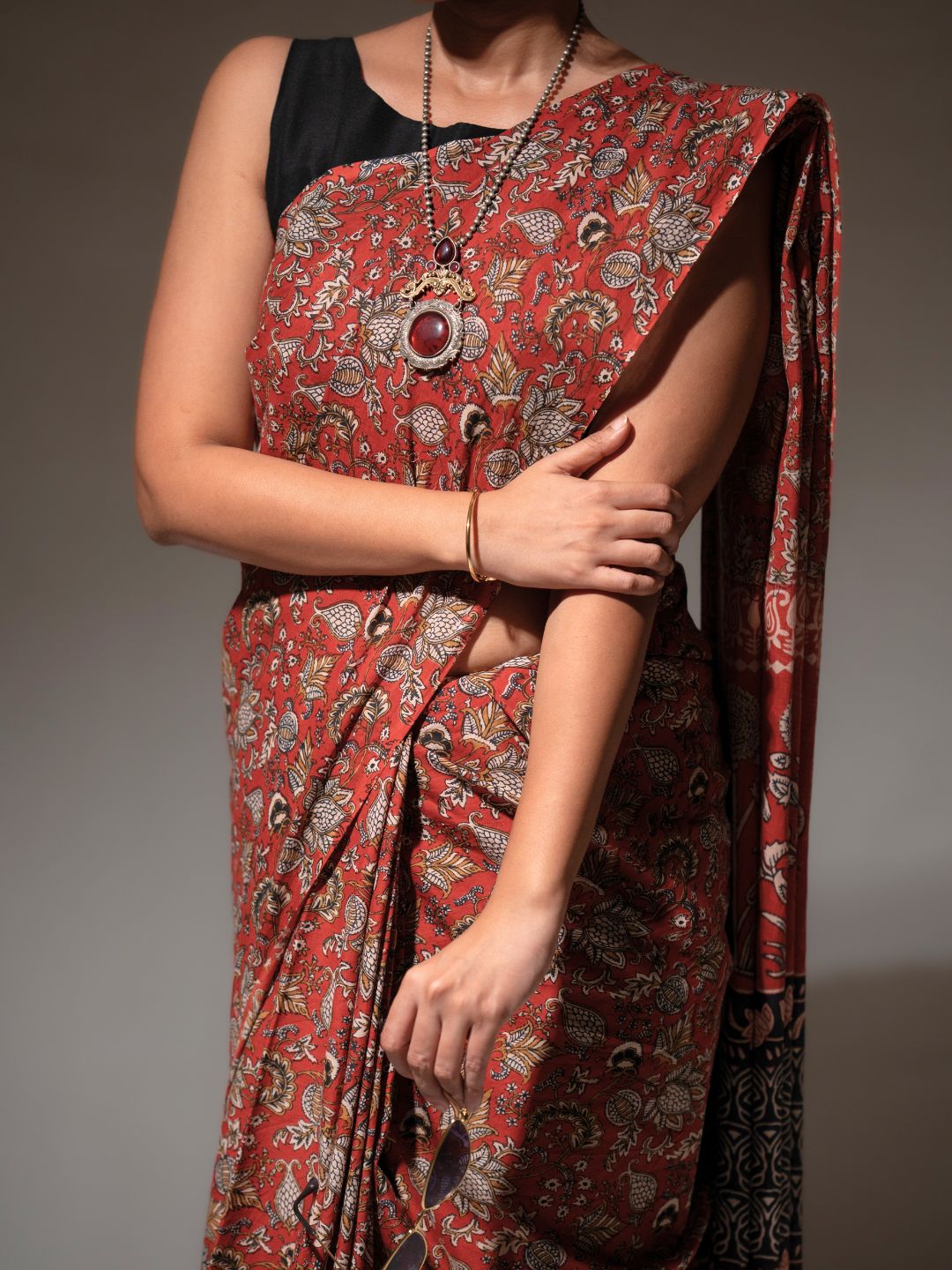 Elevate your style with Ira, a rust red designer saree that seamlessly blends festive charm with corporate elegance. Crafted to make a bold statement, it offers both comfort and sophistication, meeting the real fashion needs of every woman. Perfect for any occasion, Ira ensures you stand out with grace and confidence.