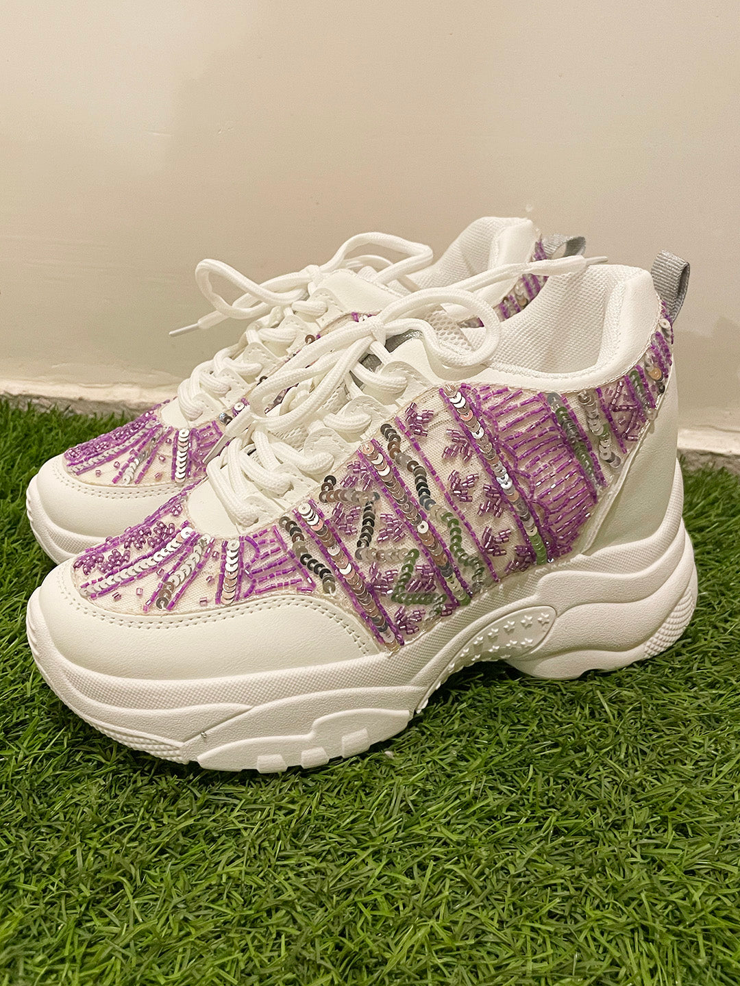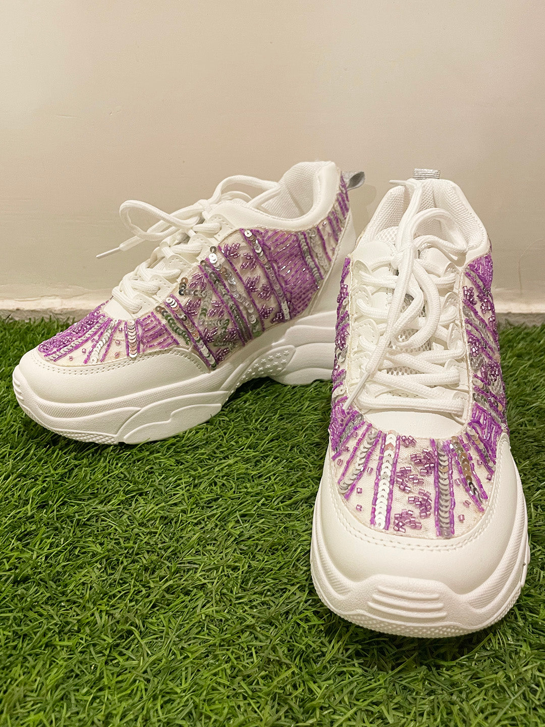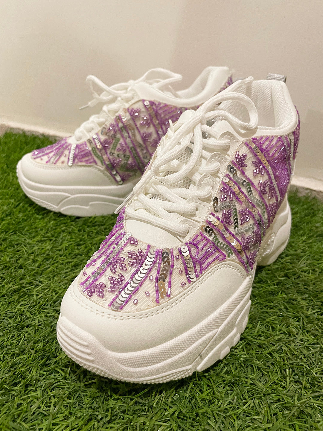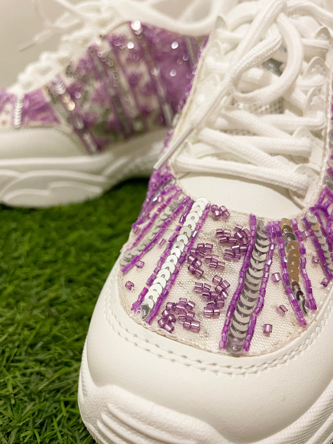Lavender and Silver Sequins Custom Kanvas Sneakers