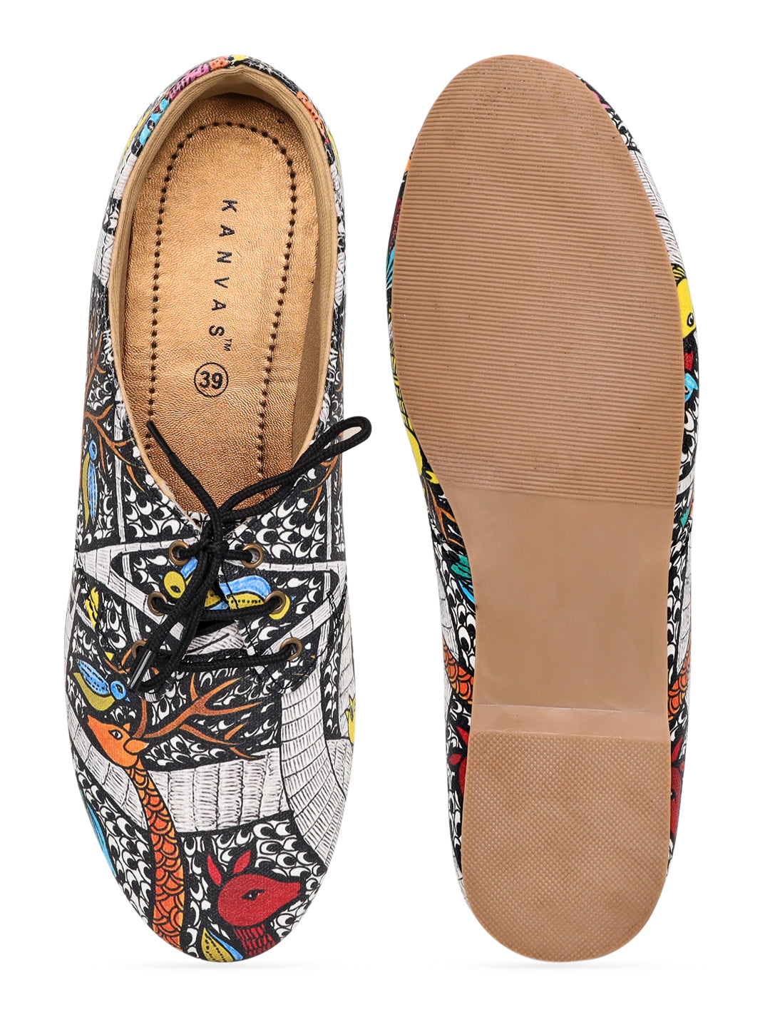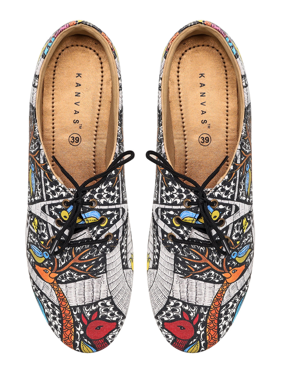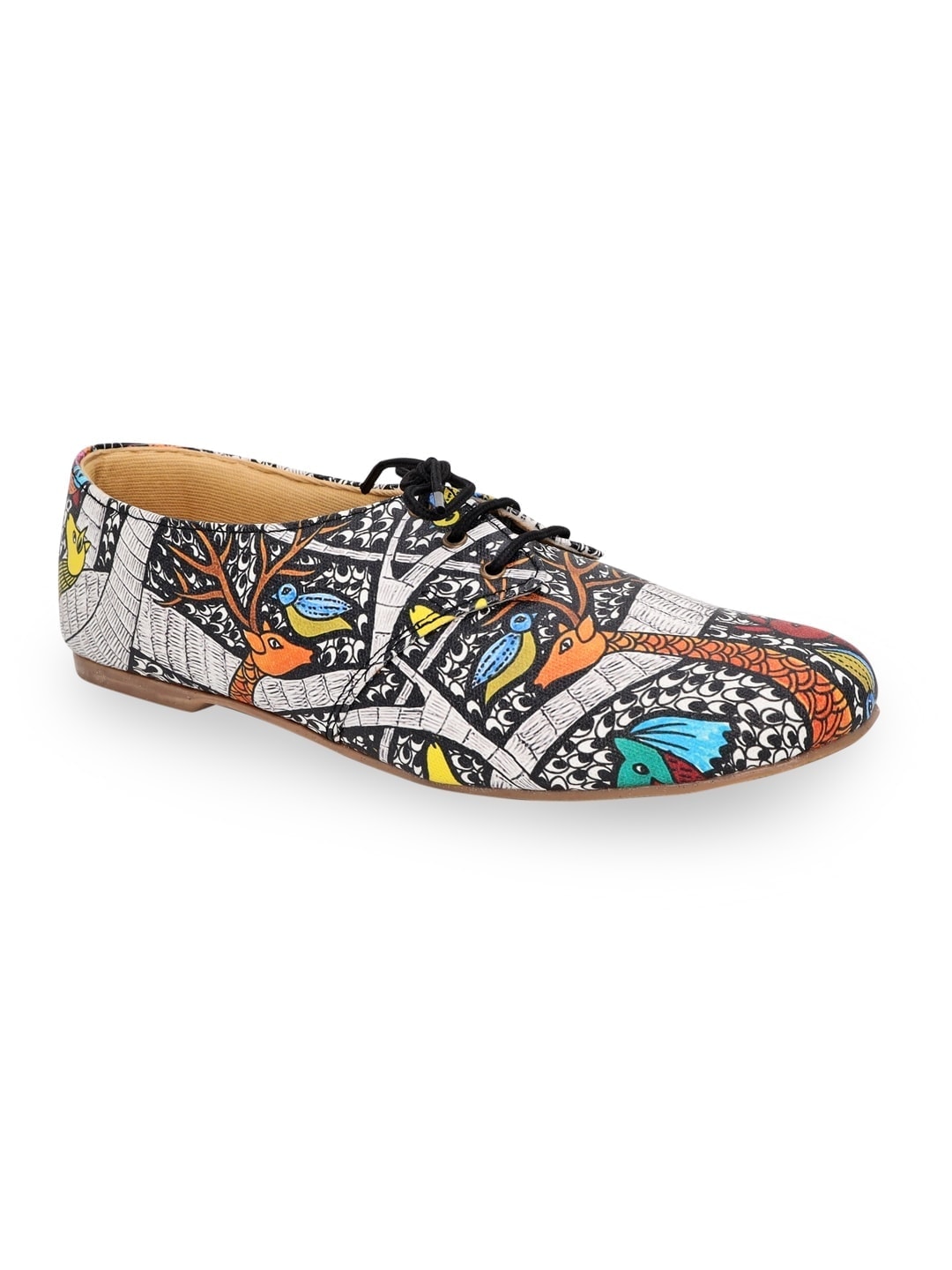 These handcrafted shoes are a piece of art. Designed with intricacy and watercolour paintings these shoes give you a very artsy look. It makes you look fresh and alive suiting perfect wear for casual day wear. Promising outstanding comfort with its super durable sole, this pair of shoes can be teamed with a skater dress or formal wear will make heads turn, everywhere you go! This shoe is sturdy and can endure even the roughest use. Flat slip-resistant latex sole with a comfortable and steady fit.