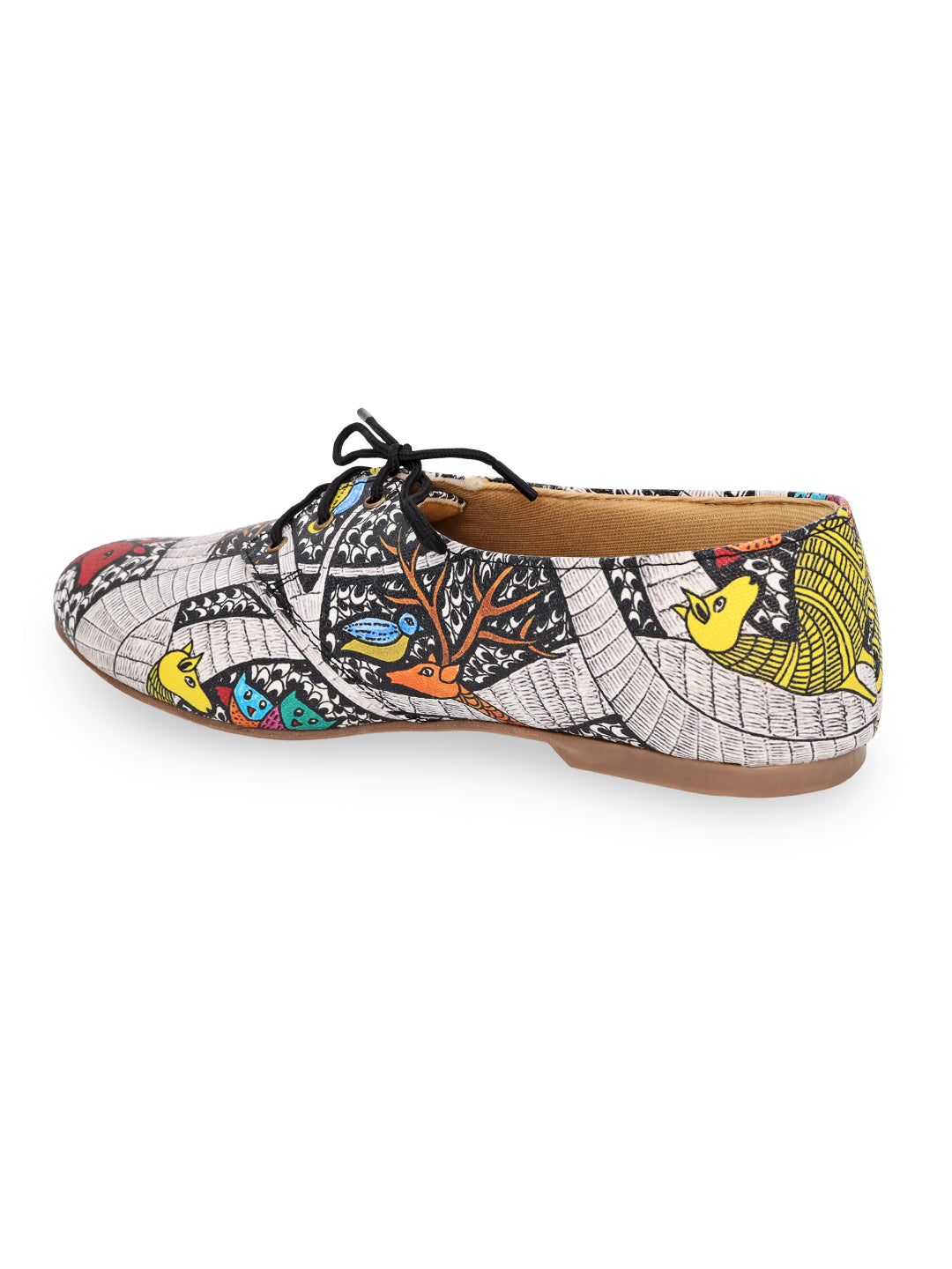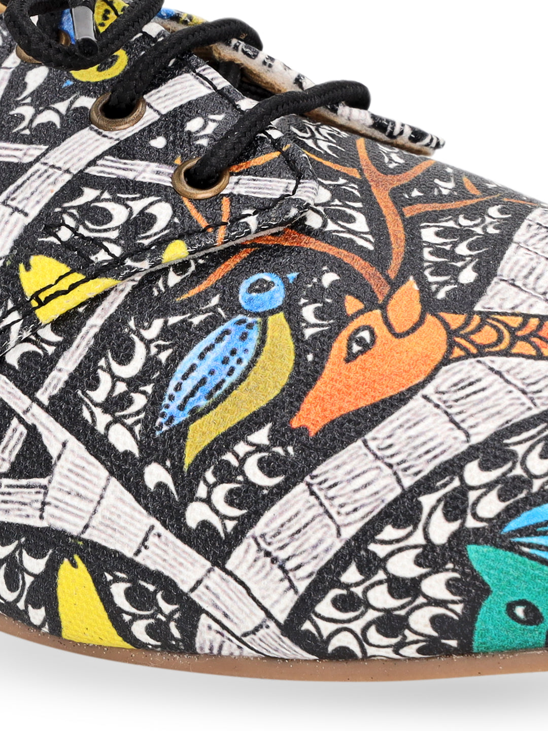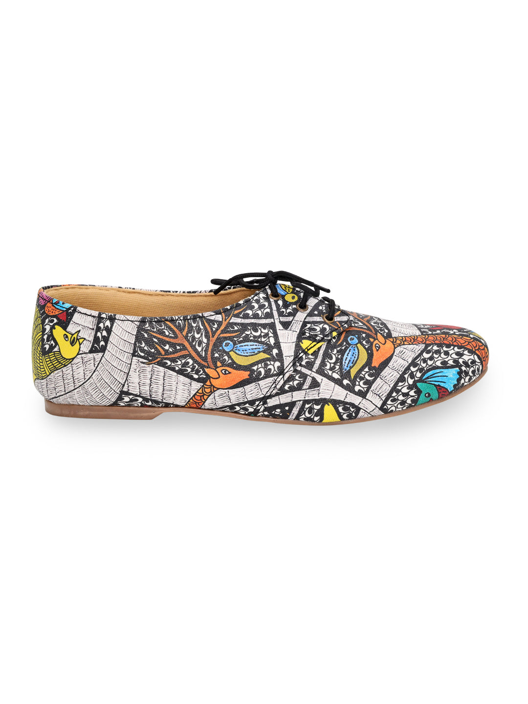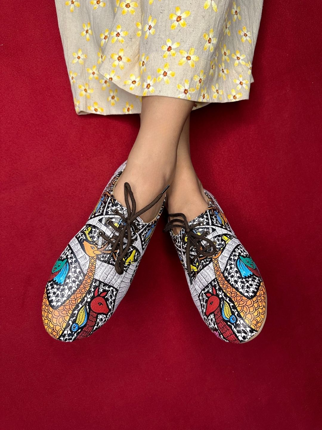 These handcrafted shoes are a piece of art. Designed with intricacy and watercolour paintings these shoes give you a very artsy look. It makes you look fresh and alive suiting perfect wear for casual day wear. Promising outstanding comfort with its super durable sole, this pair of shoes can be teamed with a skater dress or formal wear will make heads turn, everywhere you go! This shoe is sturdy and can endure even the roughest use. Flat slip-resistant latex sole with a comfortable and steady fit.